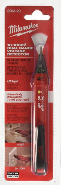El detector de voltaje de doble rango de 10 a 1000 V de Milwaukee es el primer detector de voltaje sin contacto con la capacidad de iluminar, detectar y diferenciar de manera automática.  El rango ampliado de sensibilidad de 10 a 49 V ofrece la capacidad de detectar voltaje en sistemas comunes que normalmente no serían detectados si se usa un detector de voltaje estándar.  Entre estos sistemas se cuentan: Iluminación LED, sistemas de detección y supresión de incendios, controles de climatización y controles de seguridad y acceso, entre muchos otros.  El detector de voltaje de doble rango de 10 a 1000 V no solo detecta, sino también diferencia, el rango de 10 a 49 V con respecto al rango de voltaje estándar de 50 a 1000 V.  Para esto recurre a indicadores LED de color único y a tonos audibles, lo cual indica estos dos rangos de voltaje con absoluta claridad.  Una luz de trabajo LED incorporada permite mayor visibilidad en áreas poco iluminadas y el apagado automático tras 5 minutos ayuda a preservar la vida útil de la batería.  El detector de voltaje de doble rango entre 10 y 1000 V es una solución de detección de voltaje óptima en su categoría para cualquier eléctrico, técnico de climatización o técnico de mantenimiento de instalaciones.
